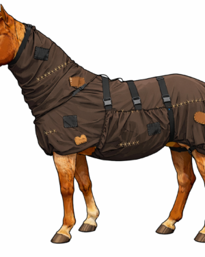 Det finns även två spännen på sidorna av huvan som fästs med spänne som du själv syr fast på täcket.